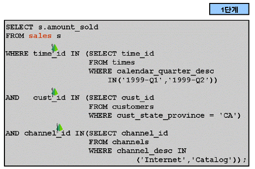 Subquery unnesting(괄호를 풂) -> 서브 쿼리로 작성되었지만 조인 방식으로 해결될 수 있음
